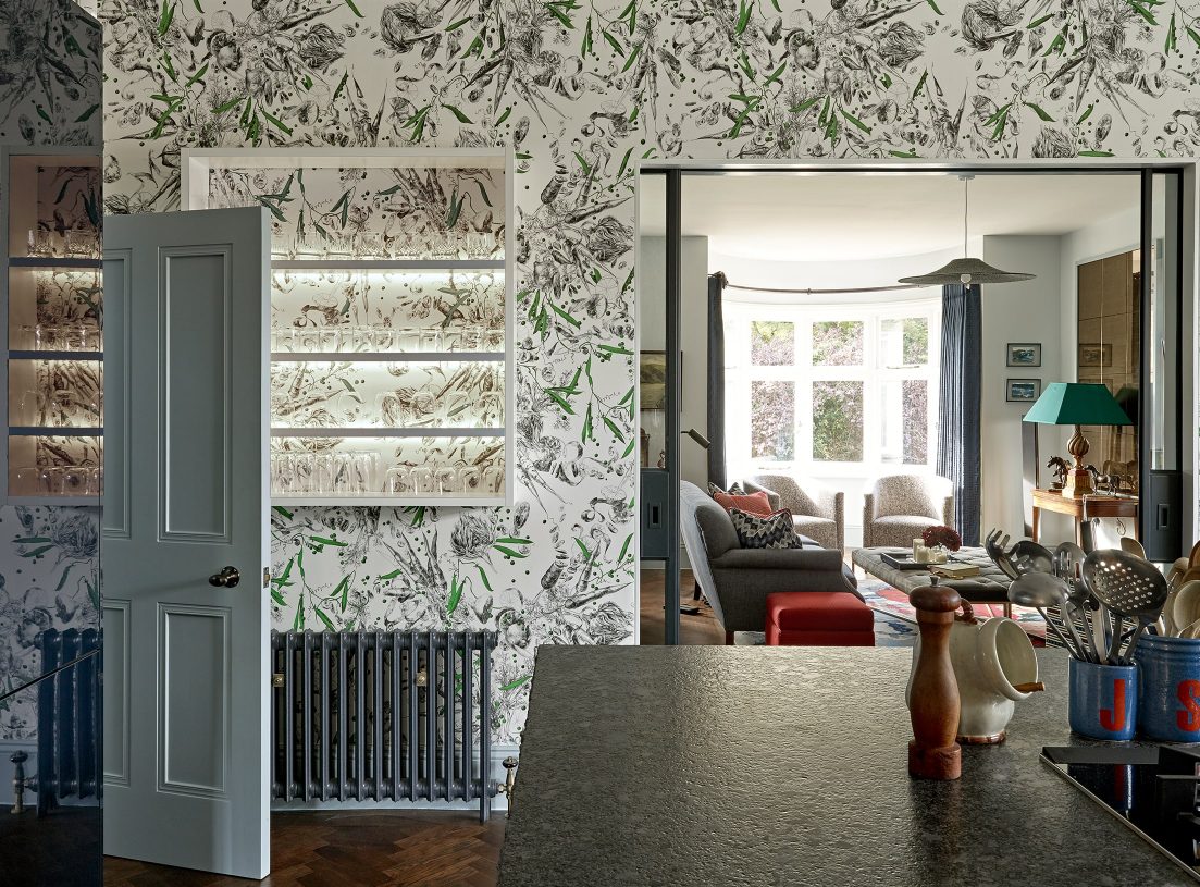 The proportions of the property allowed for a complete reconfiguration which included re-siting the kitchen in the previous living/dining room and turning the previous kitchen into a luxurious pantry/overflow space to keep the main kitchen looking presentable at all times.