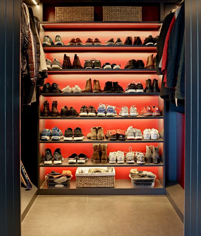 We used bespoke cabinetry to create extensive storage throughout the property – ranging from a much-needed boot room to carefully considered storage in the elegant lounge.